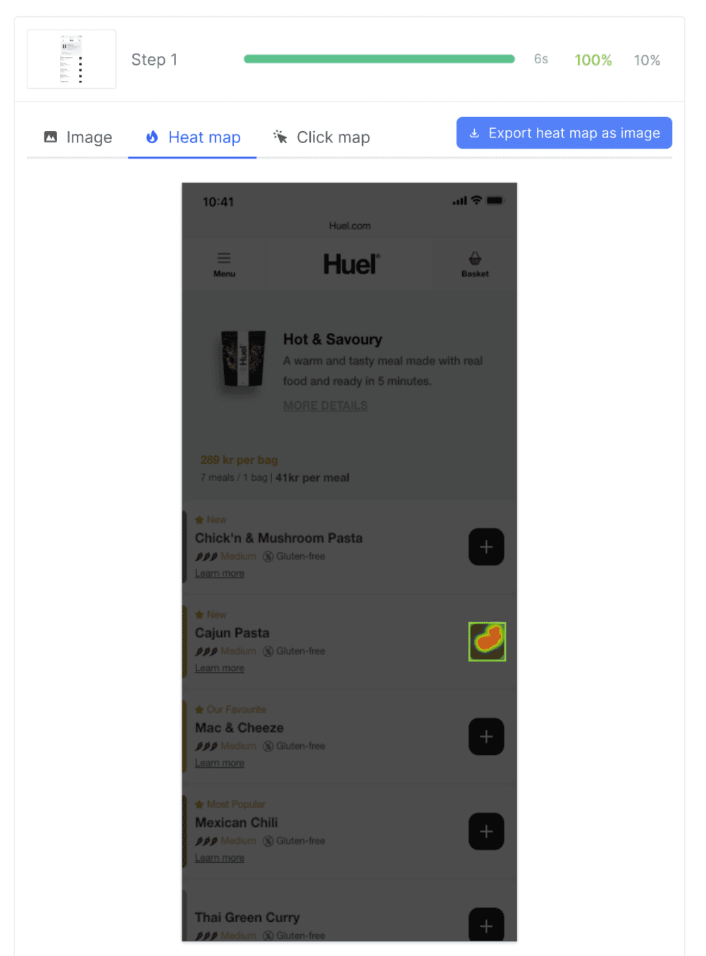 65% misclicks. Users clicked on the flavor card or text instead of the "+" button