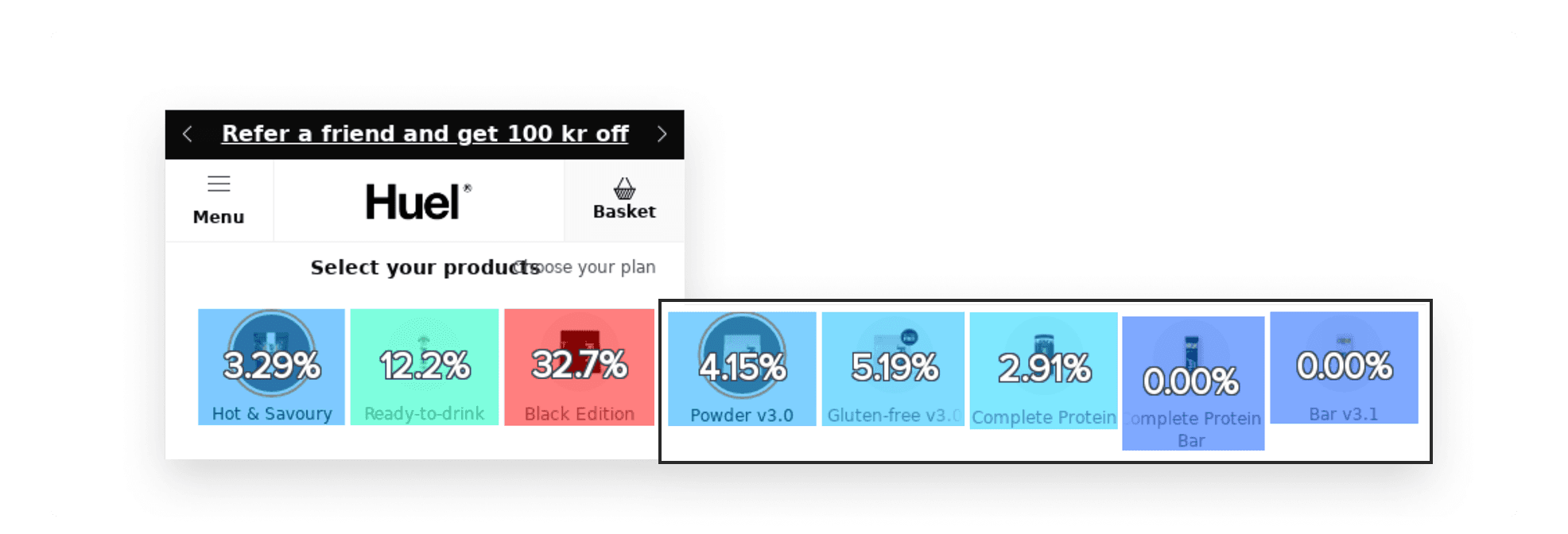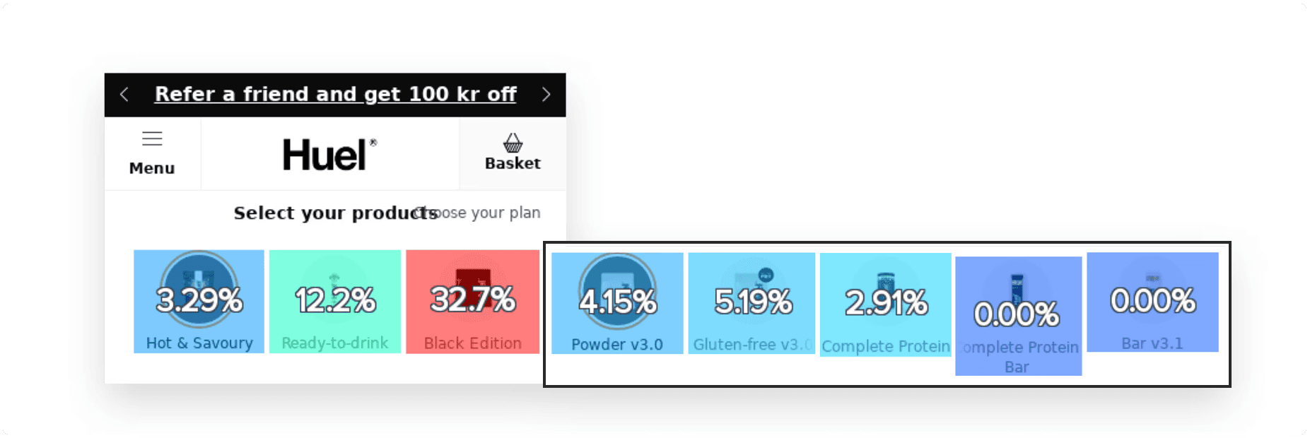 Heatmaps confirmed that most user interactions were concentrated on the first three visible products.